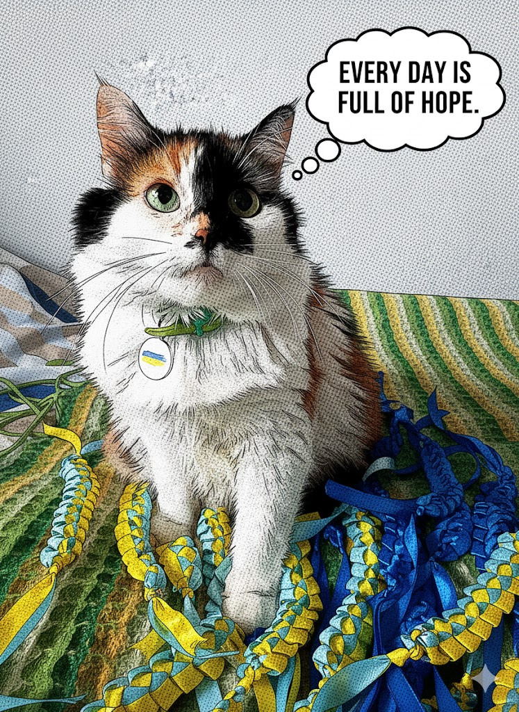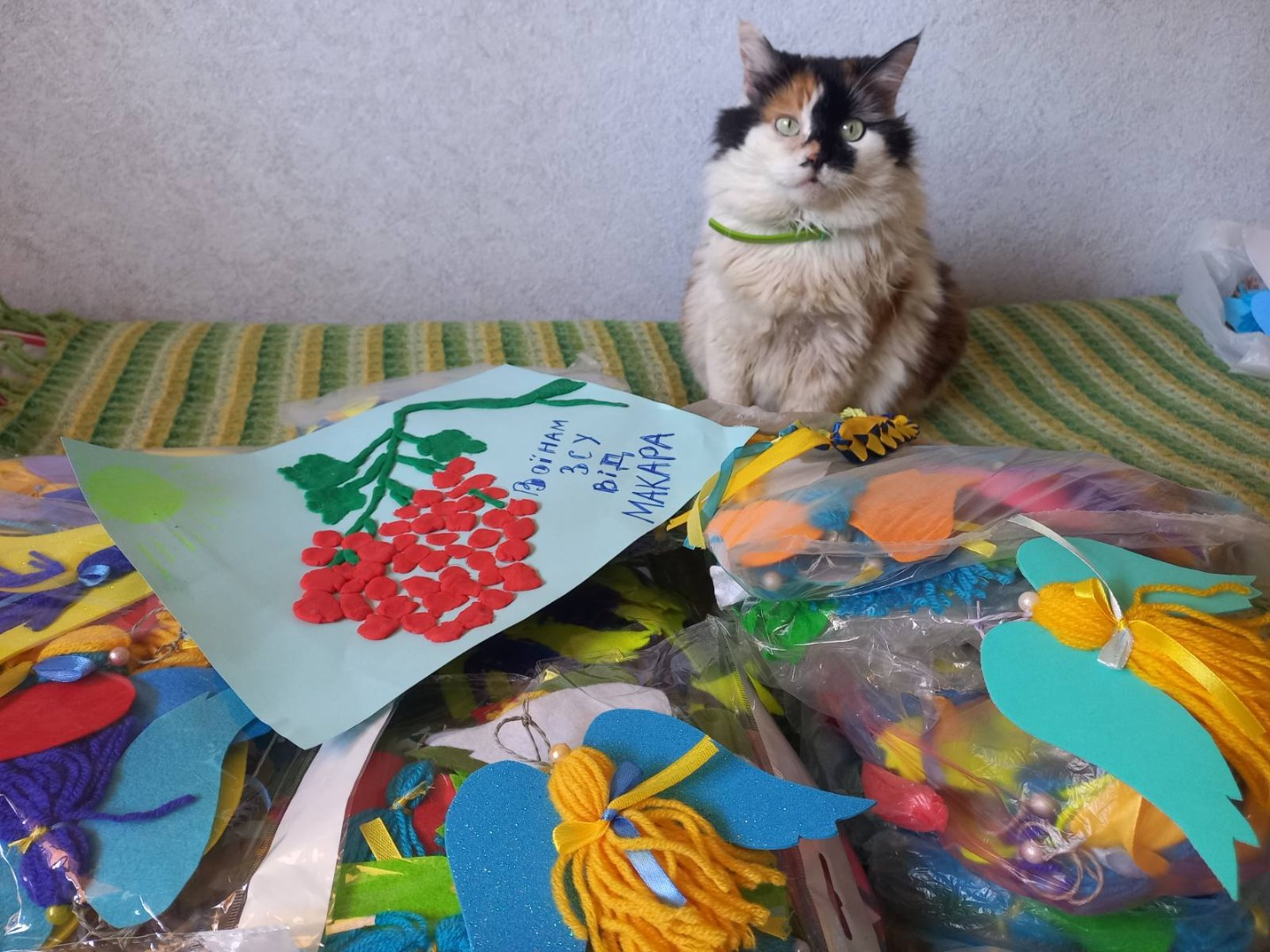 Буся - символ нашої благодійної компанії. Триколірна кішка, що приймає активну участь у виготовленні та тестуванні оберегів. Саме від її імені ми (вчителі,батьки, учні та небайдужі люди) відправляємо допомогу нашим захисникам, публікуємо пости вдячності у Фб.